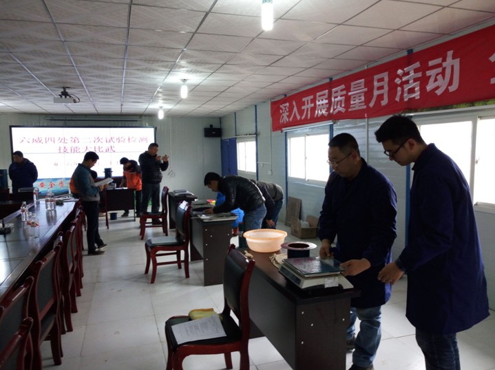本次比武由六威高速LWZ4中心试验室提出方案,并对现场场地的布置、操作设备状态的进行确认,力保比武顺利进行。比赛内容分为理论考试和试验实际操作两个部分,参赛人员展示了他们坚实的理论基础、娴熟的操作技能、敏锐的判断眼光、强烈的责任意识,有能力为交通建设把好质量关,让社会放心,让人民放心;对事业负责,对自己负责。