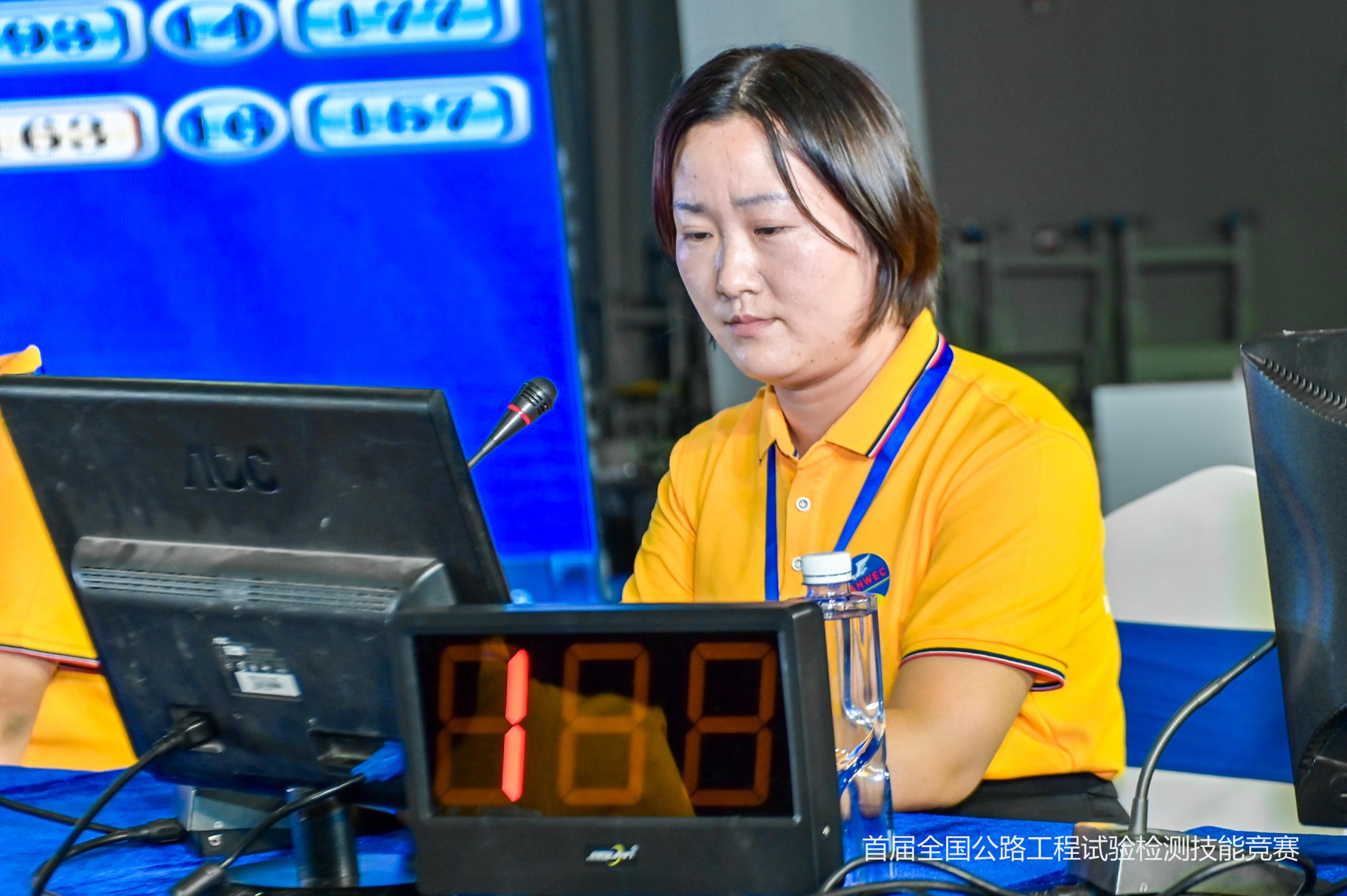 现场实操的试验检测参数是混凝土结构裂缝深度(超声波法)和水泥比表面积(勃氏法)。王丹丹、付元元在考核中运用丰富的理论知识和实践经验,在规定时间内标准地完成试验操作,以实操考核前16名的成绩,进入知识竞赛环节。